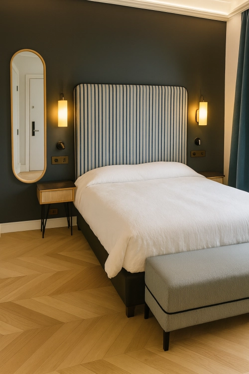 Discover our 28 elegant rooms and suites, designed to offer a perfect balance between modern comfort and intimate atmosphere.